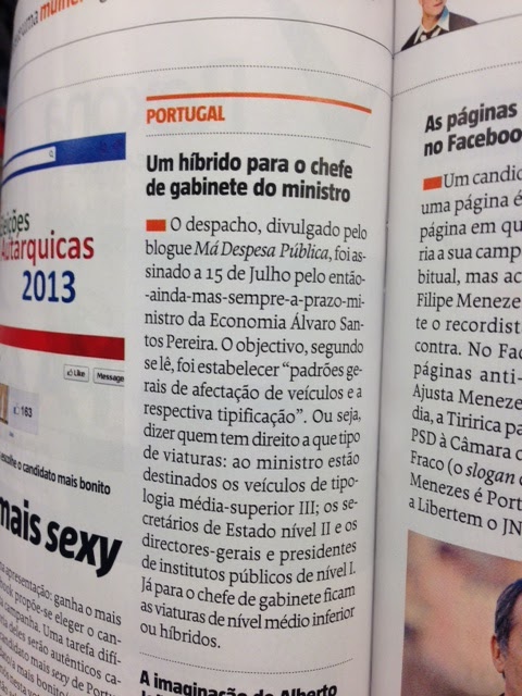 as características e os custos em função do cargo em causa. A revista Sábado